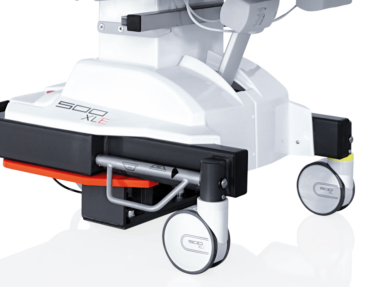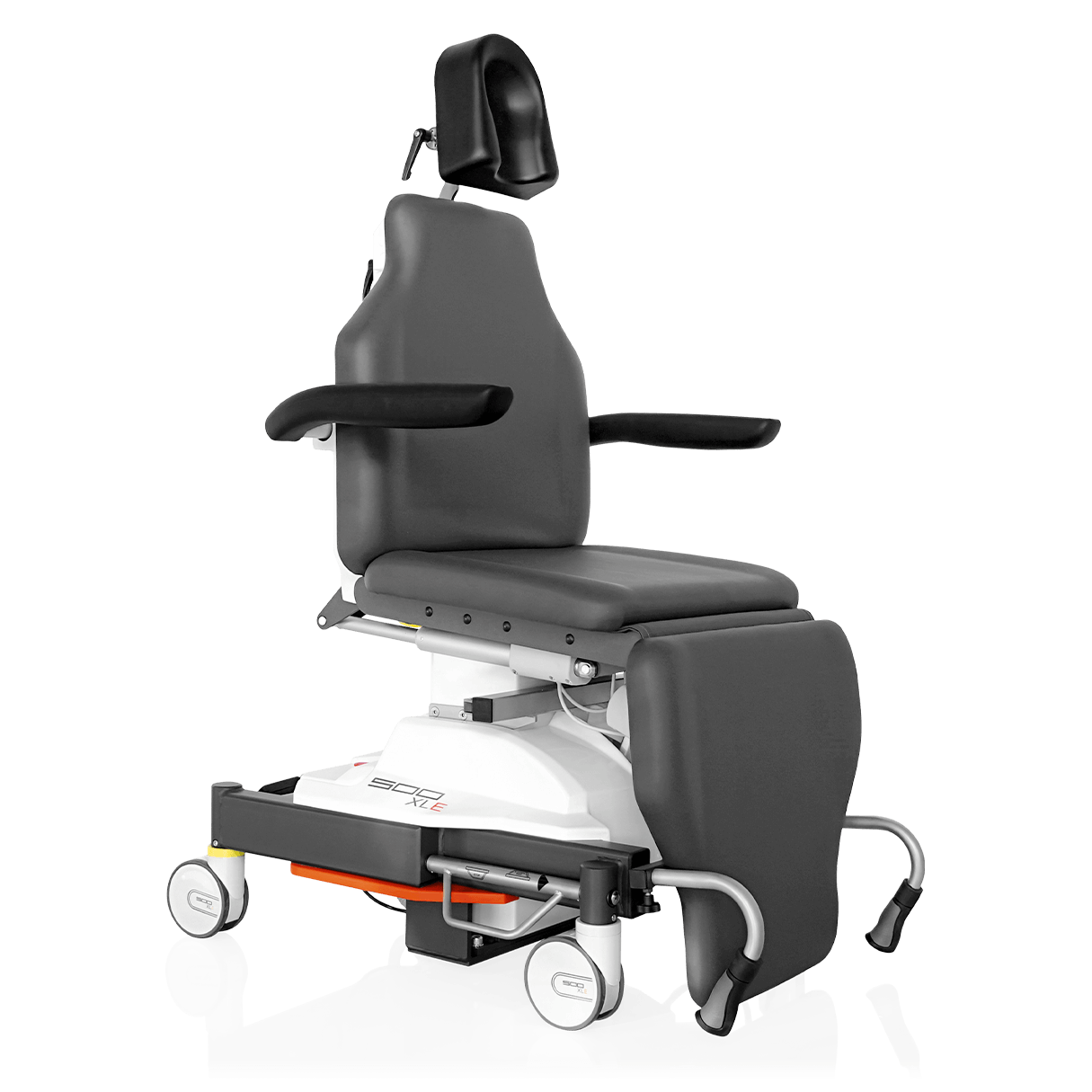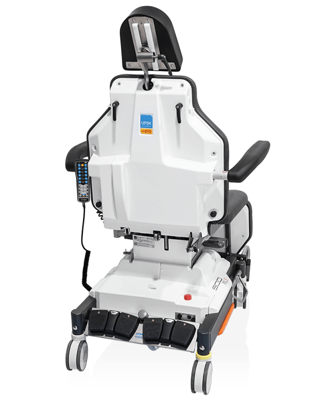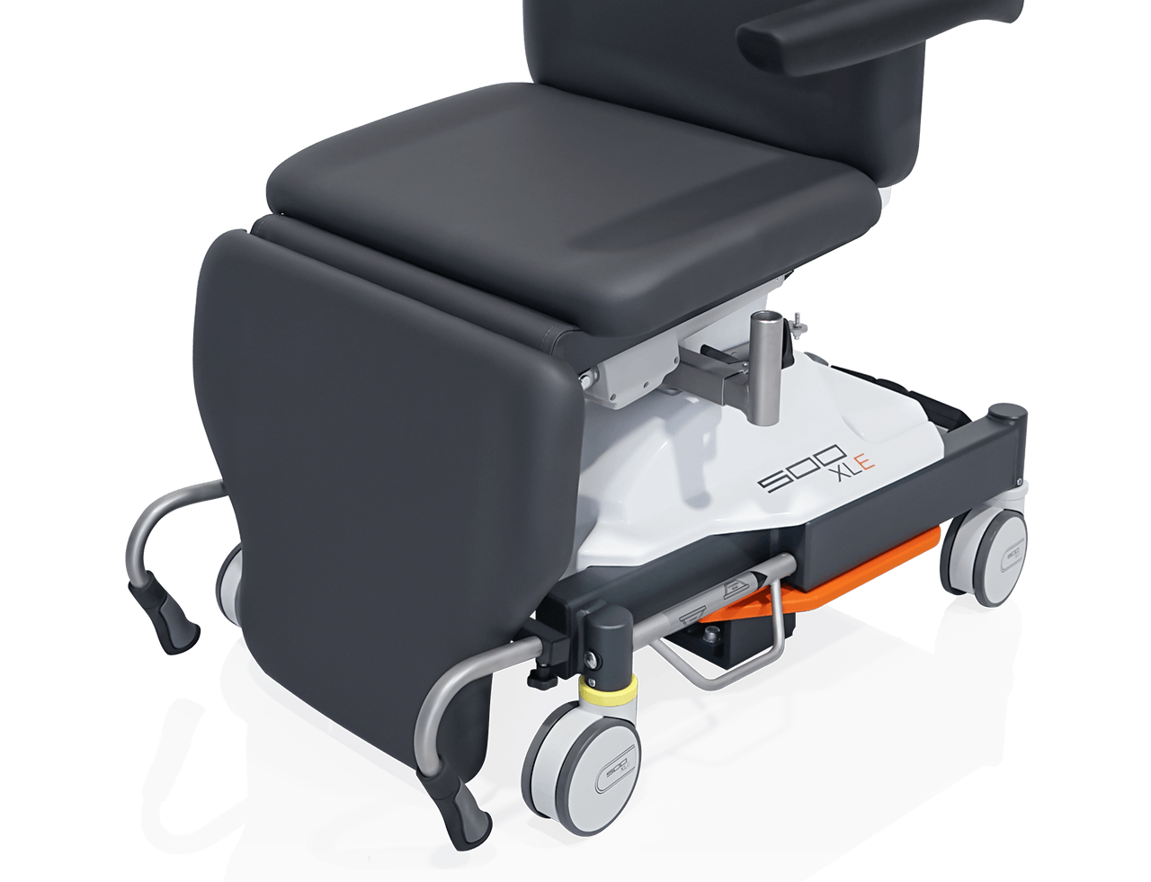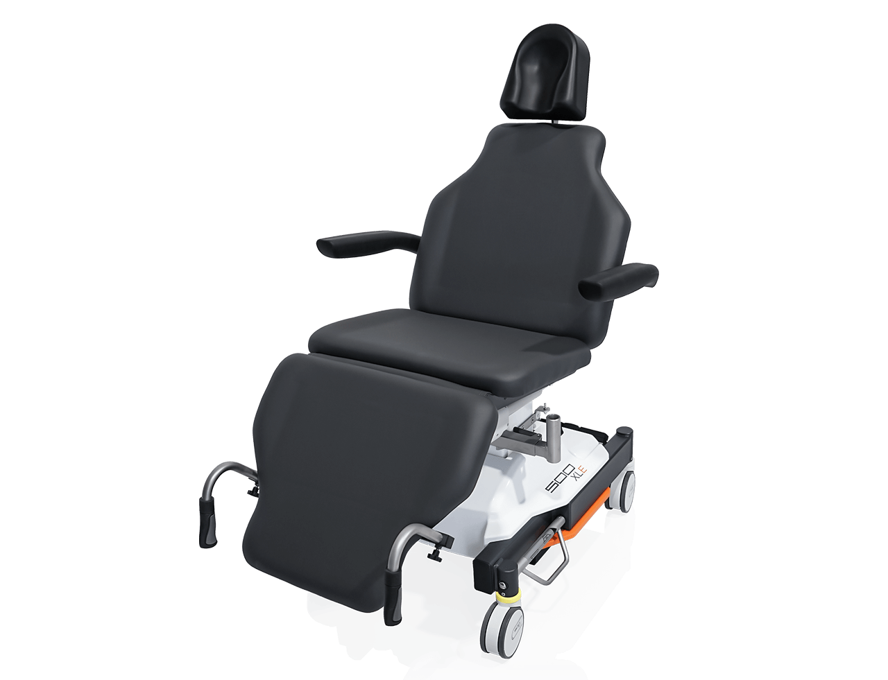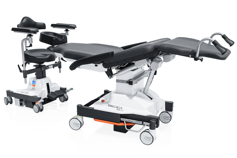 Grâce au panneau dorsal aplati, le fauteuil 500 XLE offre un espace maximal pour les jambes, quelle que soit la position, et assure ainsi des conditions de travail optimales dans la salle d’opération.