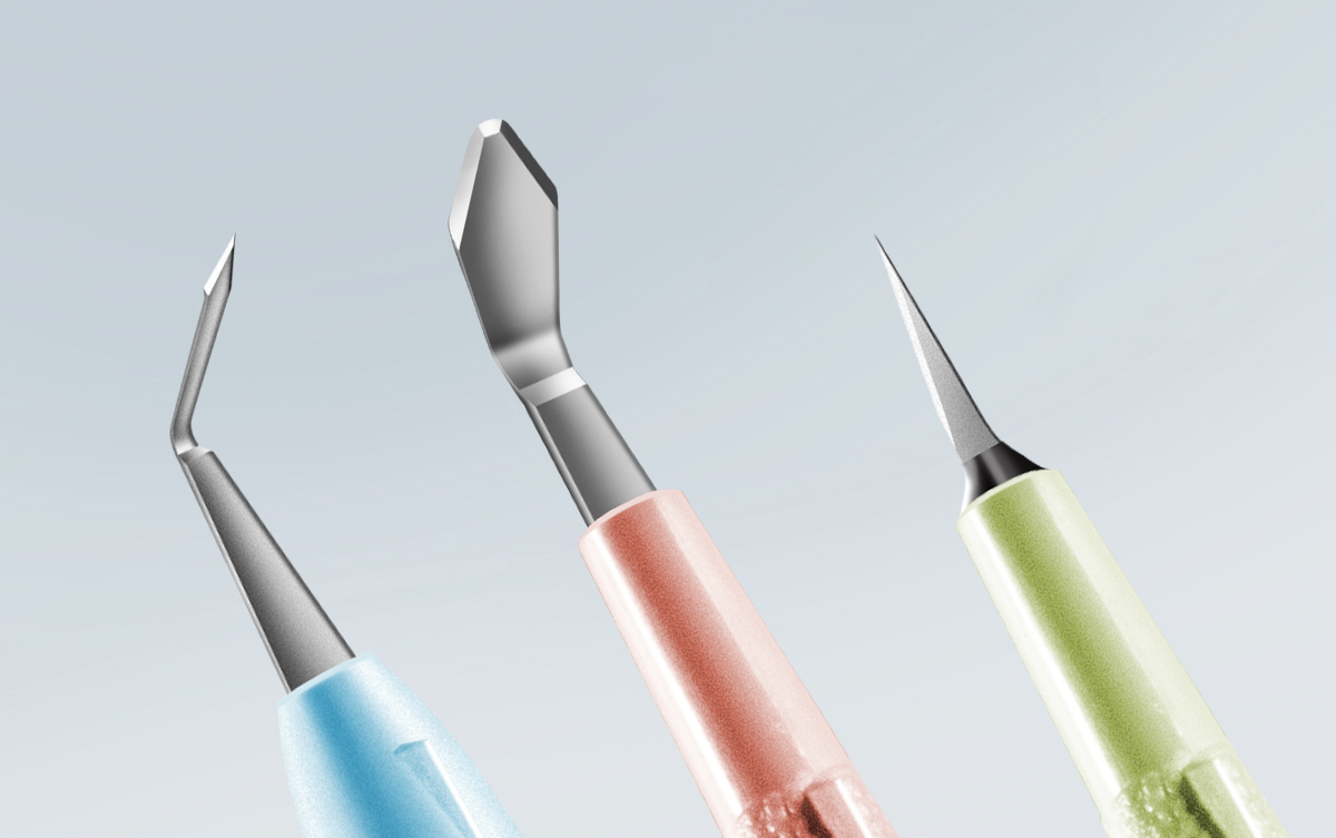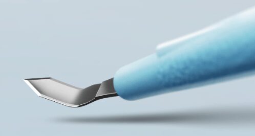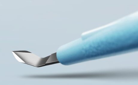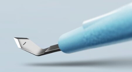 De KAI Bleb Knives met hun extra fijne, smalle, halvemaanvormige vorm zorgen voor effectieve naaldbehandeling met kleine incisies.