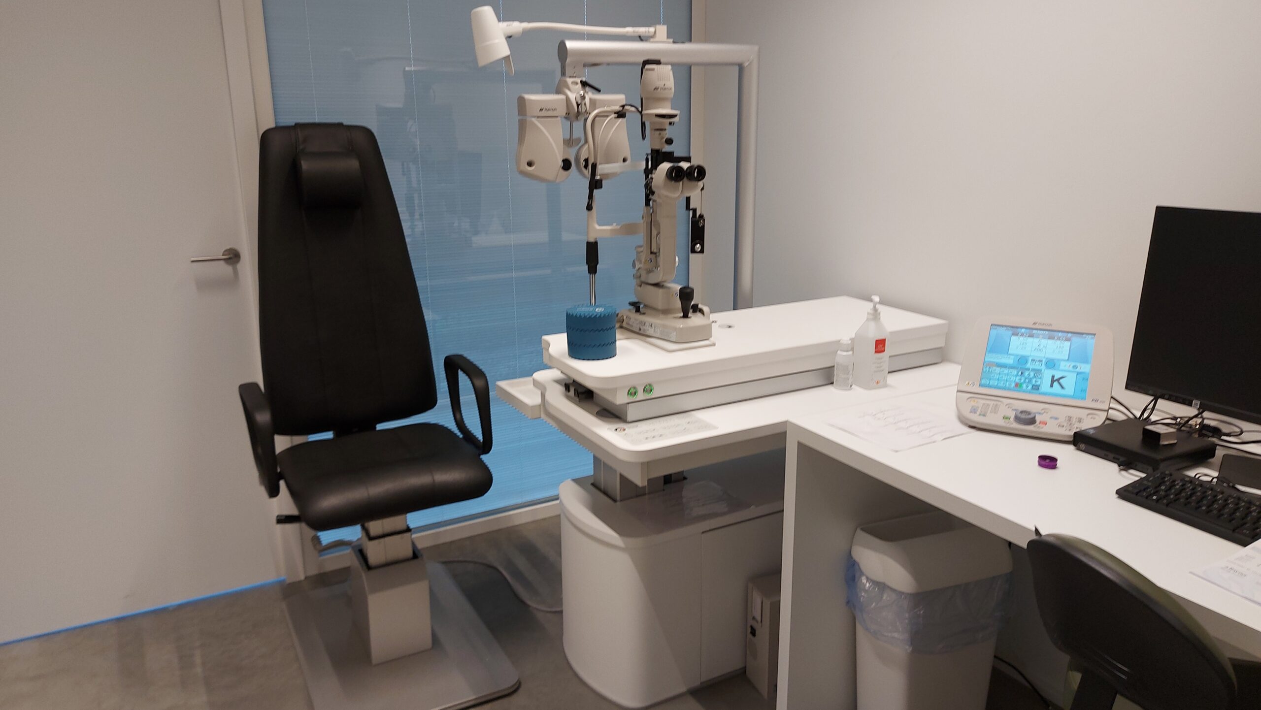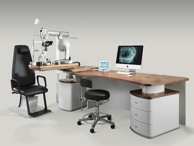 Een compacte onderzoeksunit met een schuif/dubbeltafel voor twee instrumenten.