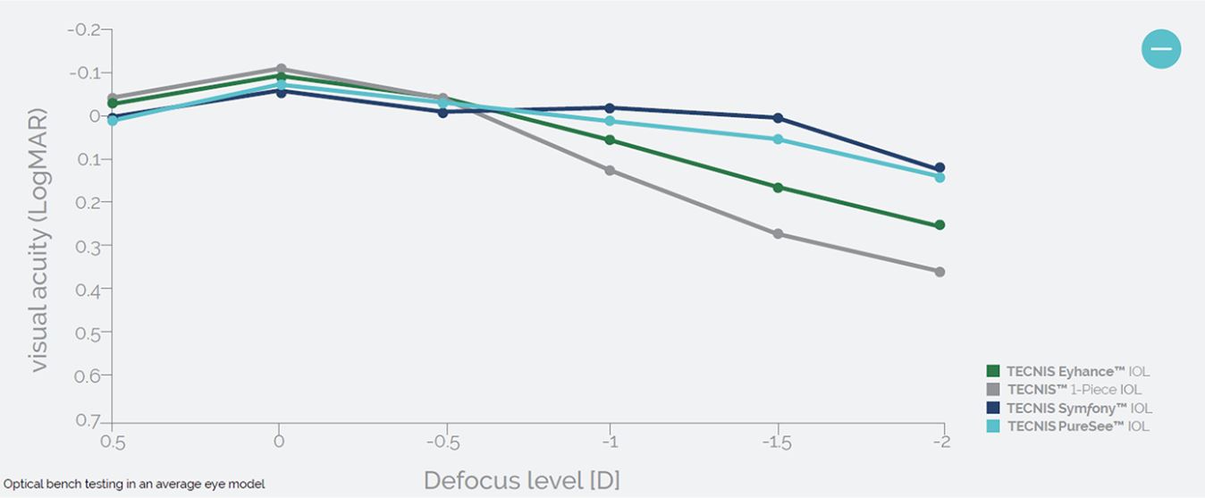 TECNIS PureSee™ IOL biedt een hoge tolerantie voor refractieafwijkingen en levert goede resultaten, zelfs bij defocus.